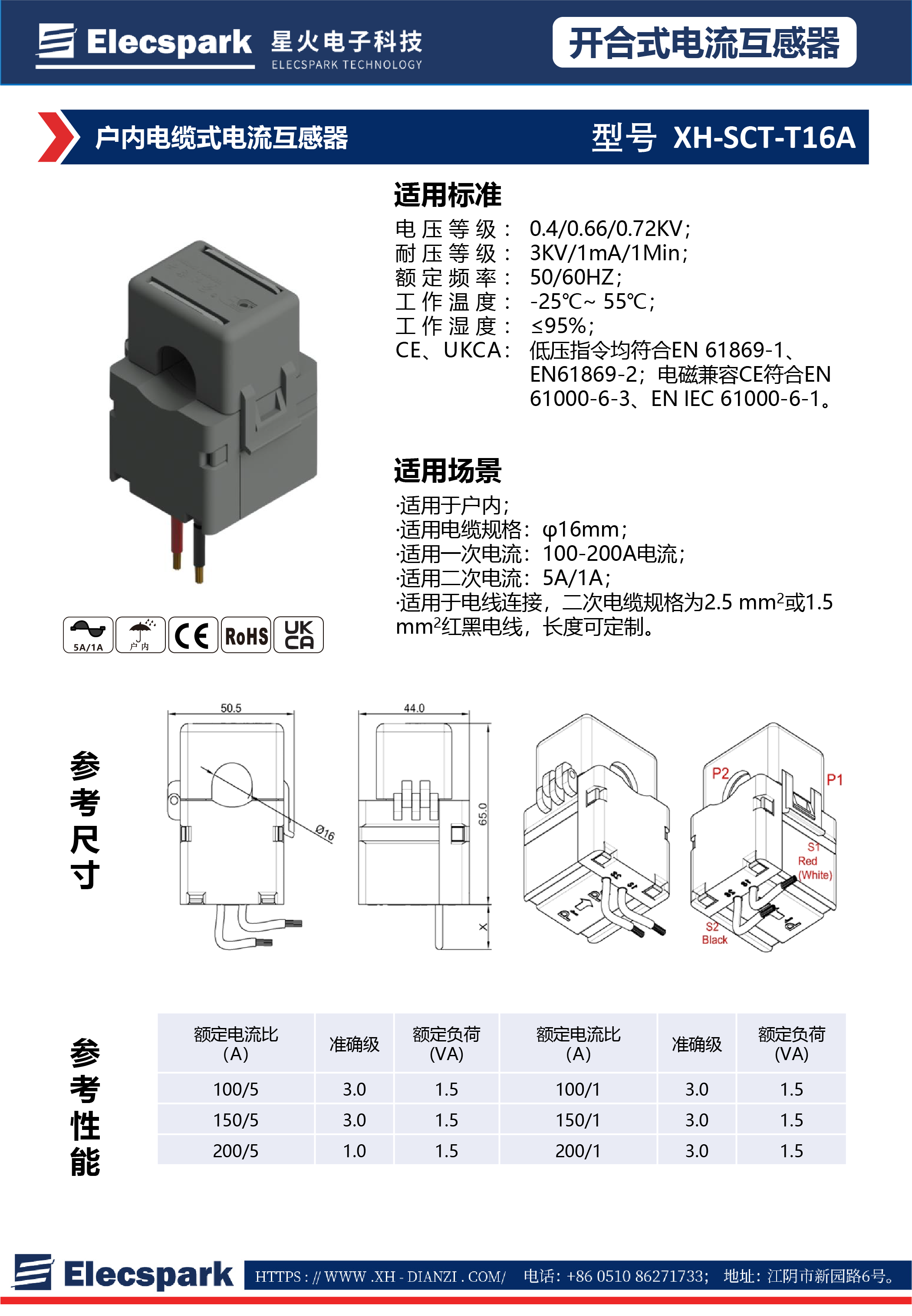戶(hù)內(nèi)電纜式開(kāi)合式SCT-T16A