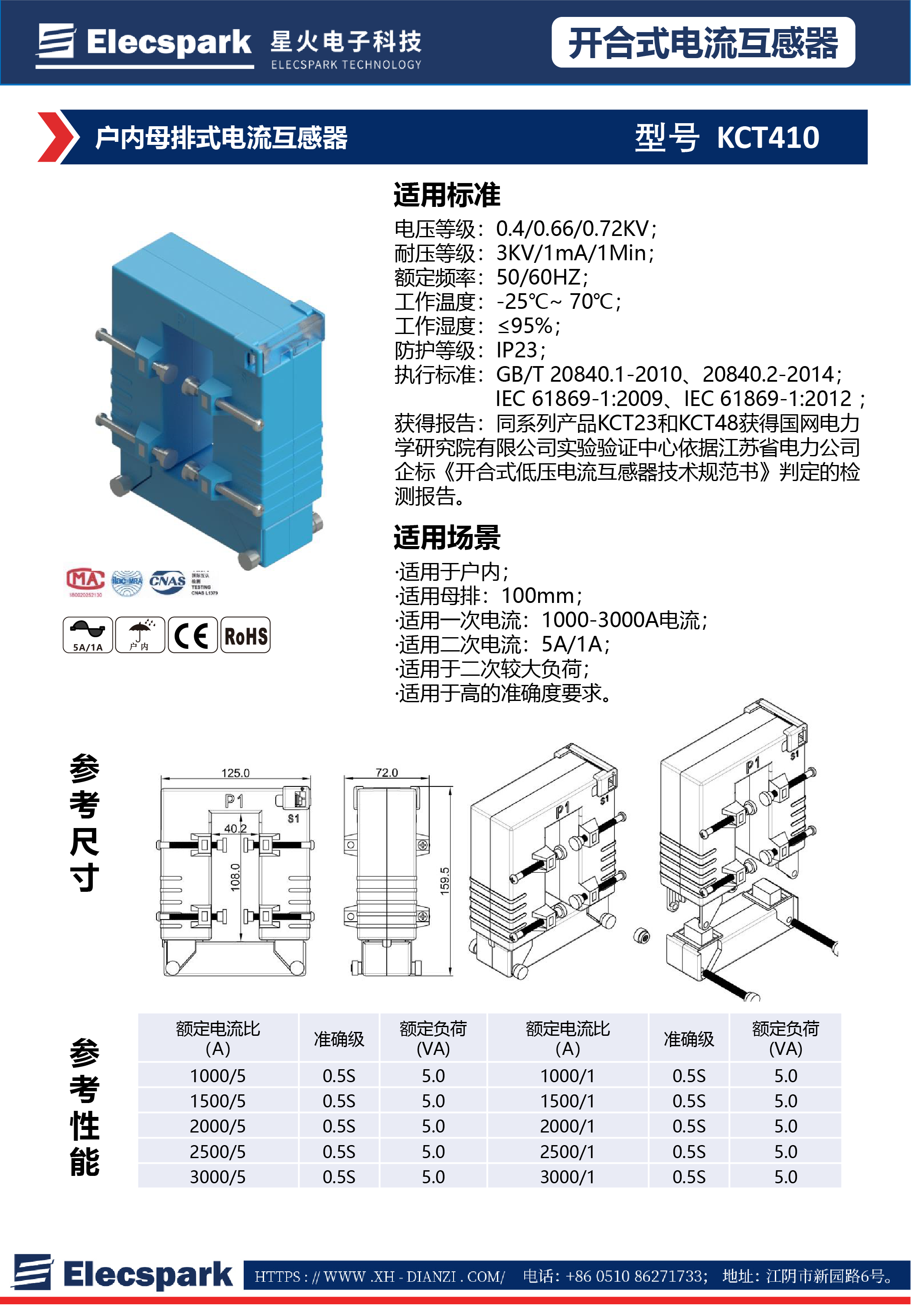 戶內(nèi)母排式電流互感器KCT410