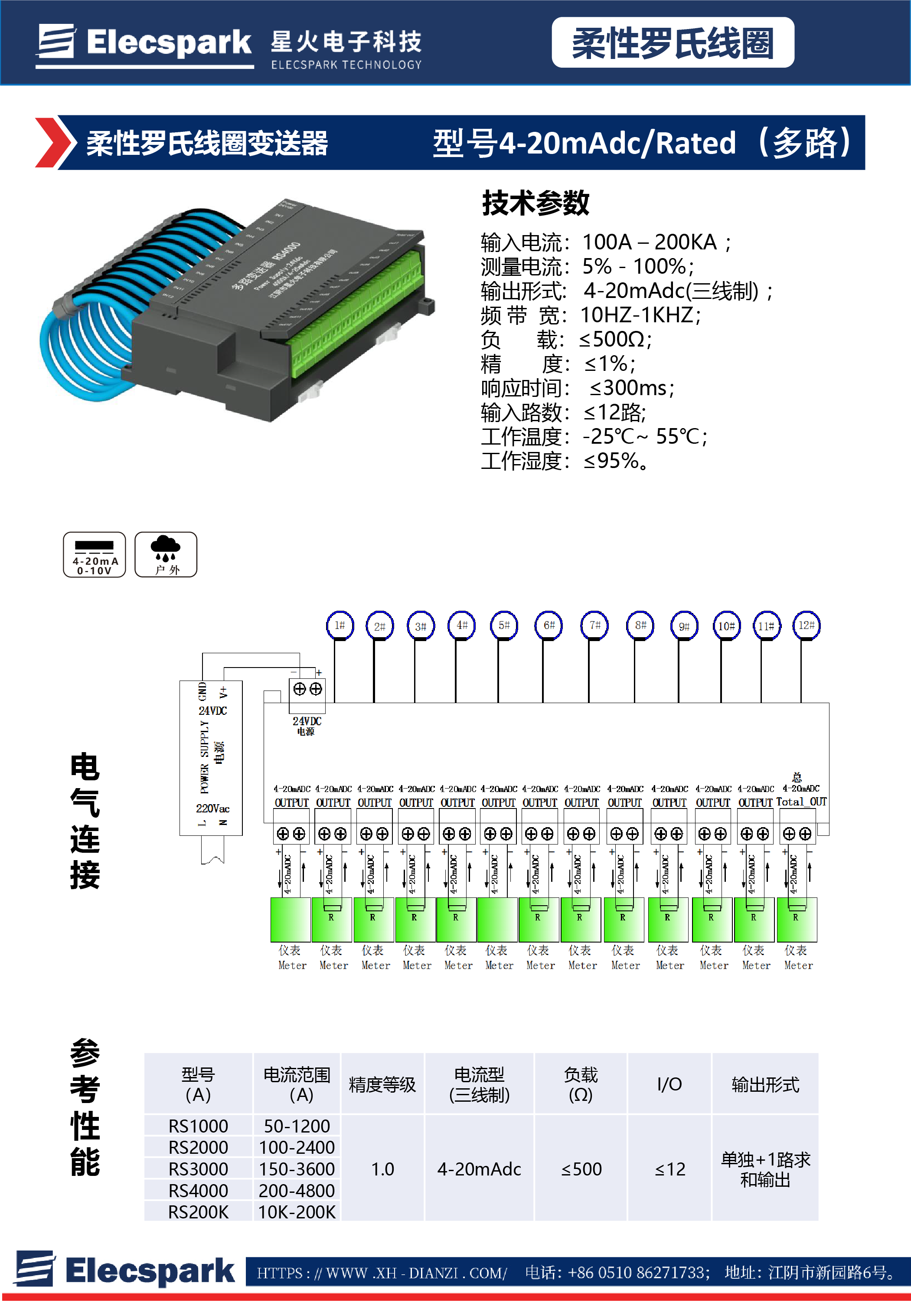 柔性羅氏線圈變送器4-20mAdc/Rated(多路)