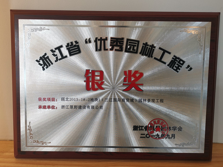 2019-09-02      2019年9月,原野集團(tuán)承建的“龍灣城市中心區(qū)G-01地塊景觀工程”、“溫州甌海中心南單元D-10b地塊綠化及雨污水工程”、“甌北2013-1#地塊(三江國(guó)際商貿(mào)城)園林景觀工程”三個(gè)項(xiàng)目分別獲得2019年度浙江省“優(yōu)秀園林工程獎(jiǎng)”金獎(jiǎng)、銀獎(jiǎng)。
