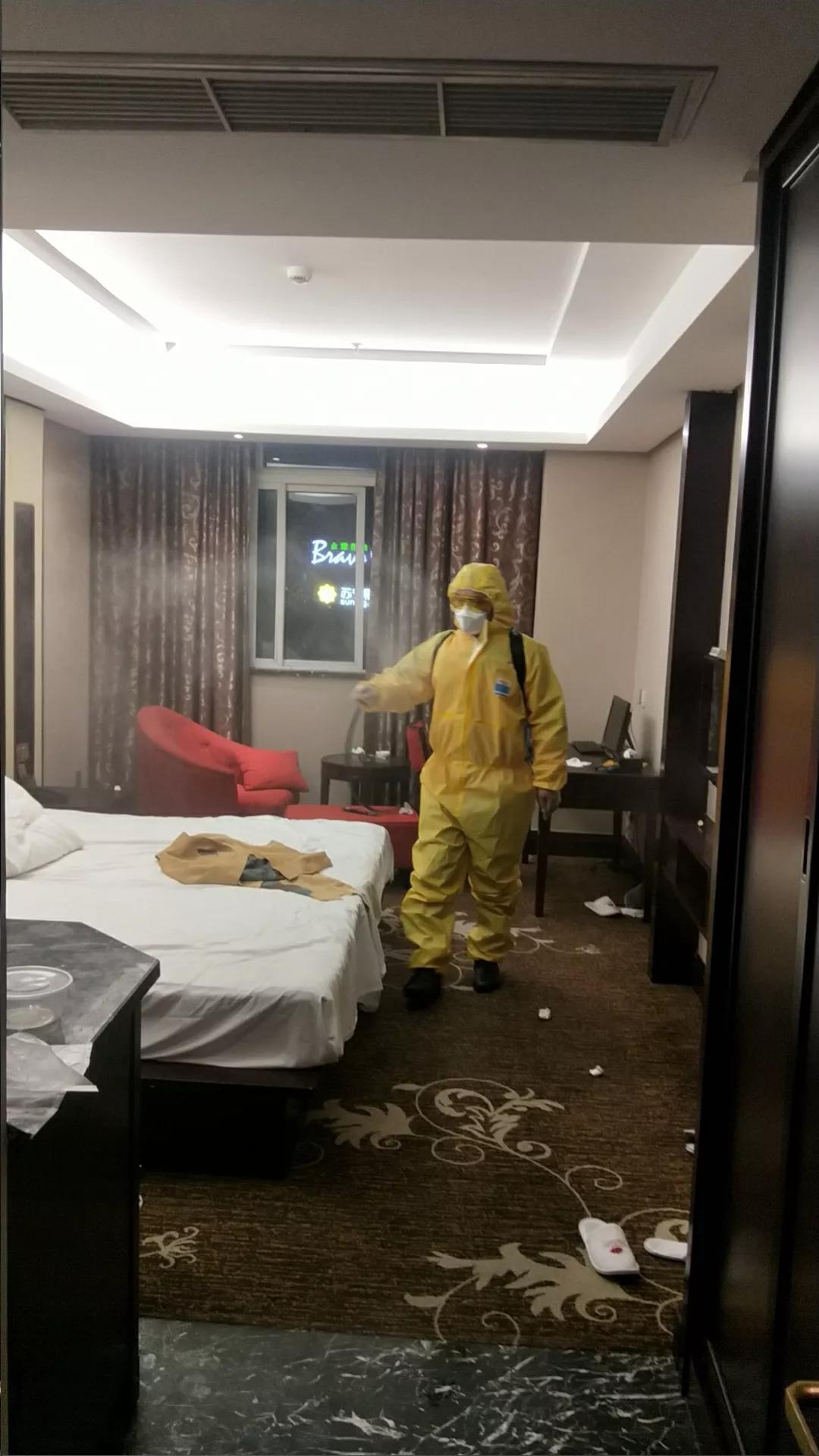 自愿組建的樂清消毒小分隊表示,各地嚴格隔離,車輛、人員不能進出。董事長李星濤立刻組織召開視頻會議,了解了人員組成、消毒和防護物資到位情況后,要求做好隨時行動準備,由他本人向防控指揮部請示進入現(xiàn)場。通過多方請示聯(lián)系,原野防疫消毒隊獲許由當?shù)亟痪膸ьI進出隔離區(qū)進行消毒作業(yè)。