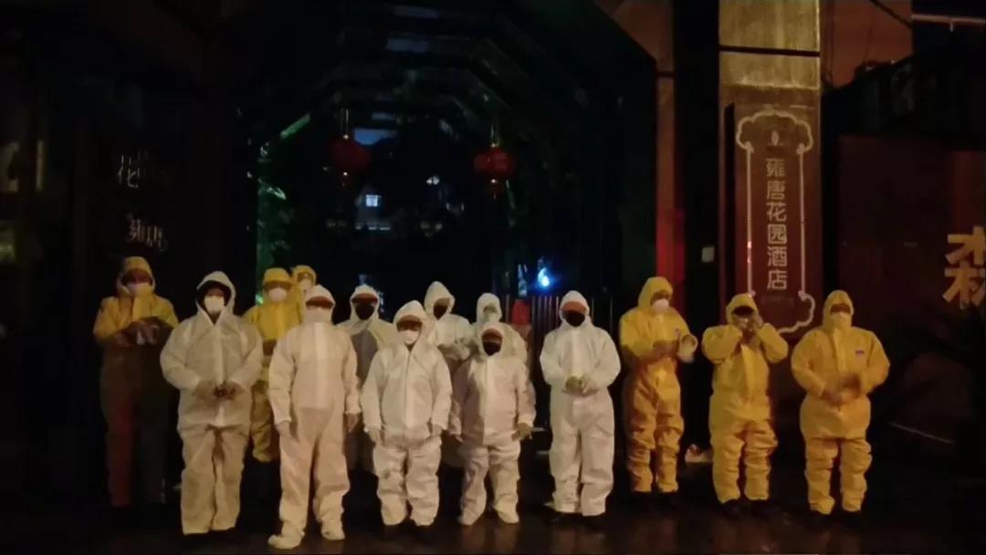 據(jù)了解,至7日凌晨2點,8名消毒隊員連夜奮戰(zhàn),共噴灑84消毒液80公斤。