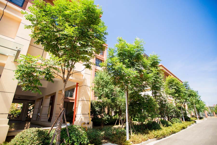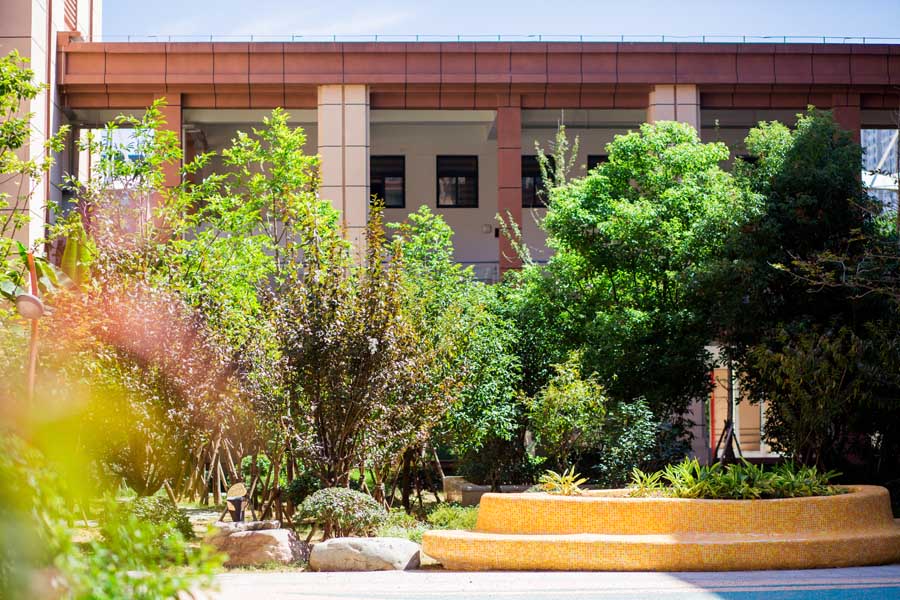 甌海區(qū)外國語學(xué)校一期、二期室外附屬及運動場工程,本工程入口兩側(cè)景墻, 是本工程的一大亮點,采用花崗巖干掛雕刻,景墻上由潘海波校長書中題字,內(nèi)容為“每一個人都有自己發(fā)展的優(yōu)勢”,告知每個學(xué)子們,每個人都是獨一無二的,每個人都有自己發(fā)展的優(yōu)勢,學(xué)校的初衷,也是希望每個學(xué)子們都能成為祖國的棟梁。 學(xué)校共分為四大園,每個園都有自己的特點,樵園的廊架、膠粘石(樹枝圖),讀園有馬賽克弧形坐凳,耕園整石座凳,漁園的船型座椅、膠粘石(海鷗圖),都各有特色,展示了園林景觀的自然美。 運動場標(biāo)準(zhǔn)的400m跑道,設(shè)有籃球架、排球架、足球門、四格肋木、雙杠單杠等,是學(xué)生早操和體育課的場所,也是甌海區(qū)中小學(xué)體育比賽的最佳場地。 植物突出園林景觀特色,以本地樹種為主,適當(dāng)引入園林觀賞性樹種,落葉樹種和常綠樹種自然搭配,高低錯落,灌木與地被的完美配置,充分展現(xiàn)了自然景觀。